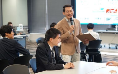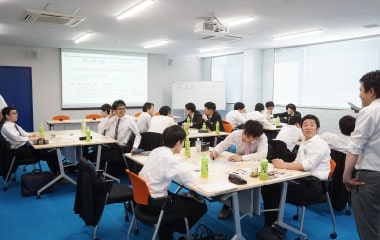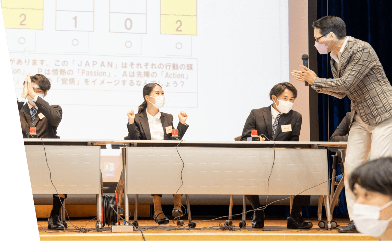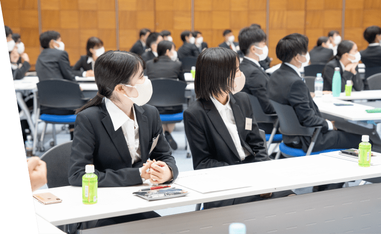 ワークショップを通じて「企業理念とはなにか」「社会に出て働くことはどういうことか」「仕事で成果を出すにはなにが必要か」などについて考えてもらいます。